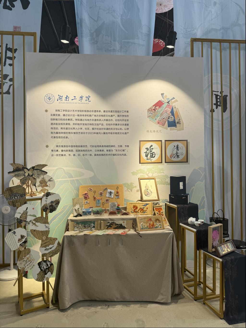 本次展出的作品由best365教师珠晖区非遗传承人谭怡蕊及涂希指导学生开发,主要分为锦灰堆非遗文创和衡阳现代文创产品两大类,展品形式多样,内容丰富,充分体现了师生团队的艺术创意能力,吸引了众多观众的关注与好评。
