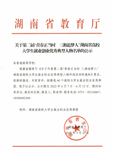喜报:我院毕业生刘杰琦荣获第二届湖南省高校大学生就业创业优秀典型人物
