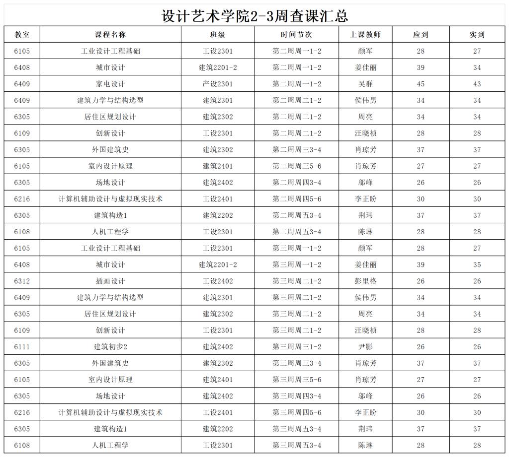 设计艺术学院2025-2026-1学期第2-3周课堂考勤情况的通报