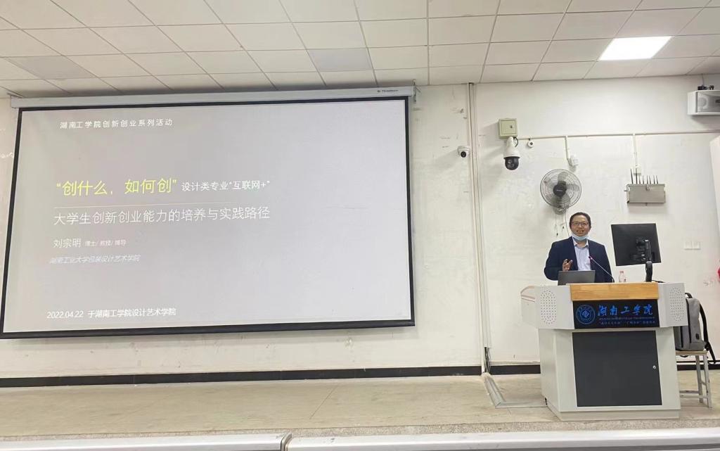 4月22日14时,在best365建工楼6106,举行了一场关于“‘创什么,如何创’设计类专业大学生‘互联网+’创新创业能力的培养与实践”为主题的学术讲座;此次讲座设计艺术学院在校人员全体参加。本次讲座由湖南工业大学刘宗明教授主讲,设计艺术学院朱永忠教授主持。