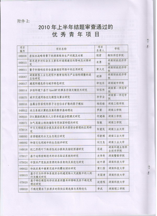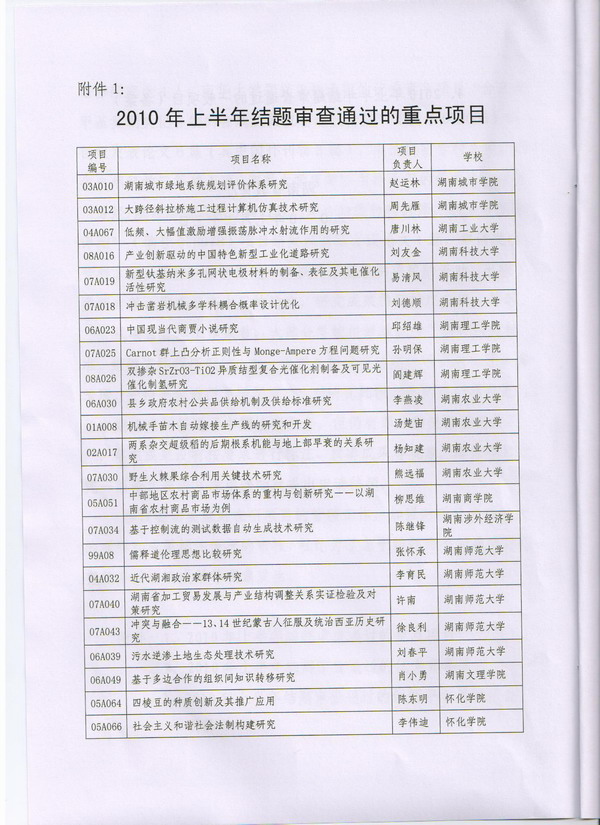 接湖南省教育厅通知,2010年6月份教育厅科学研究项目结题材料的审核工作已经完成,现将湘教通[2010]287号文件内容予以转发,请全院教师查阅。