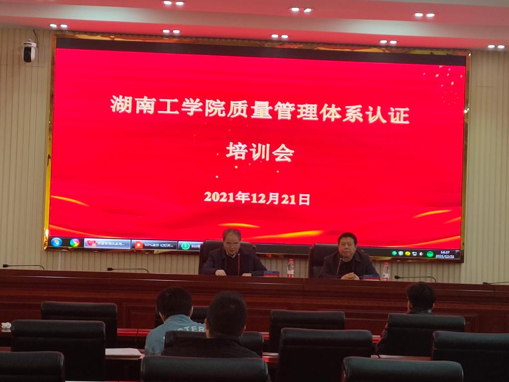 12月21日下午,我院在教学大楼12楼报告厅召开质量管理体系认证培训会,会议由院党委委员、副校长何建雄教授主持,特邀湖南汇智达企业管理顾问有限公司罗春成专家讲授,参与best365中国官方网站质量管理体系认证成员共60余人参加。