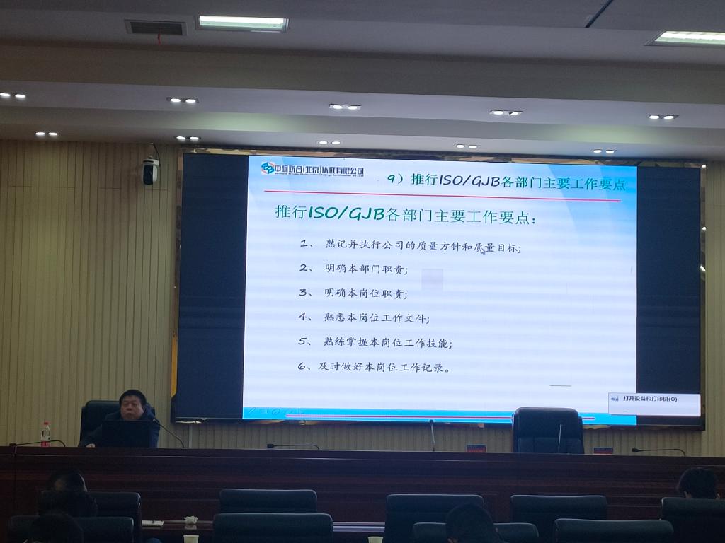 罗春成为质量管理体系全体成员开展ISO/GJB9001C质量管理体基础知识的业务培训,详细介绍了ISO/GJB产生的背景与区别,重点讲解了质量管理体系过程模式图和GJB文件结构。(科技与校企合作处)