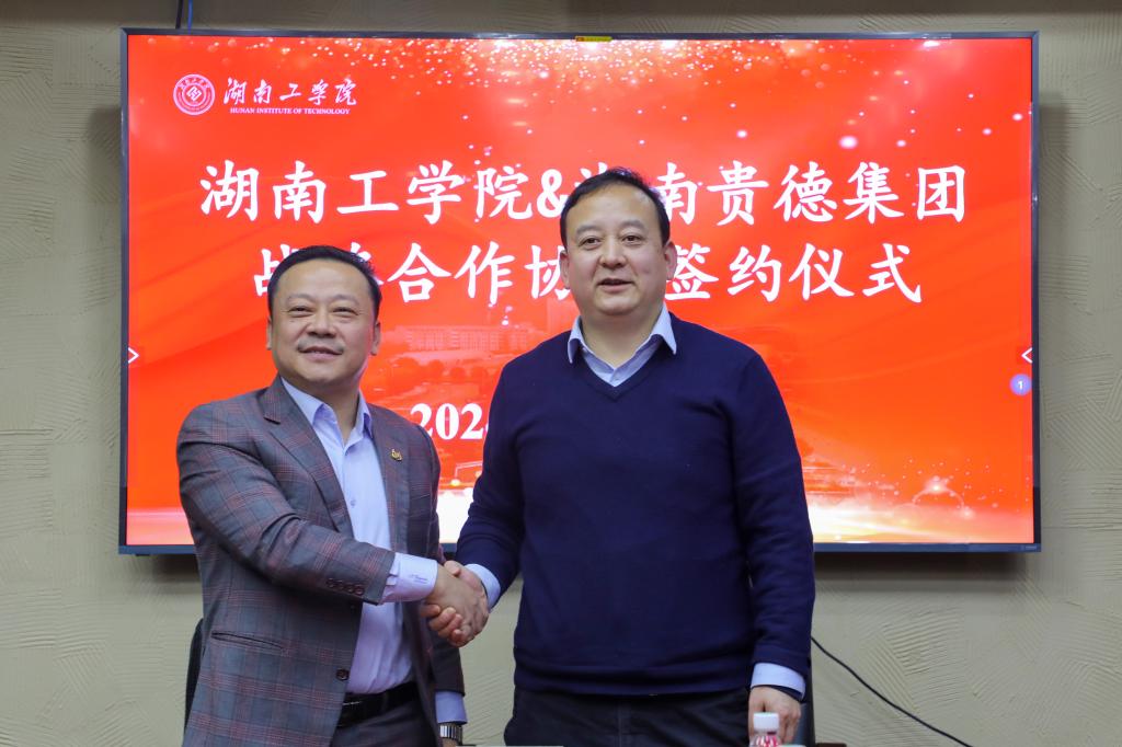 1223日午,best365与湖南贵德集团战略合作协议签约仪式在教学大楼会议室举行。校党委副书记、校长曾广胜,教务处处长李理,科技与校企合作处处长吴远志,贵德集团董事长喻贵董事长特助易丽君出席。