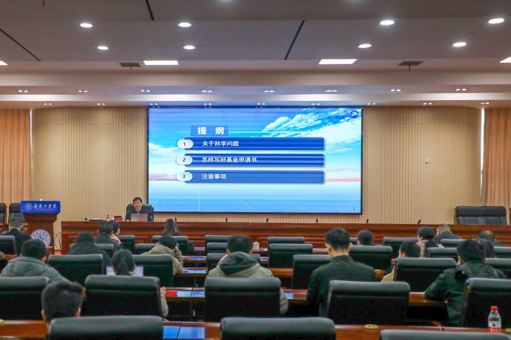 科技与校企合作处、研究生与学科建设处相关负责人,各二级学院院长、分管科研的副院长,以及申报2025年国家自然科学基金项目的教师代表共计130余人参加了此次讲座。(罗丹)