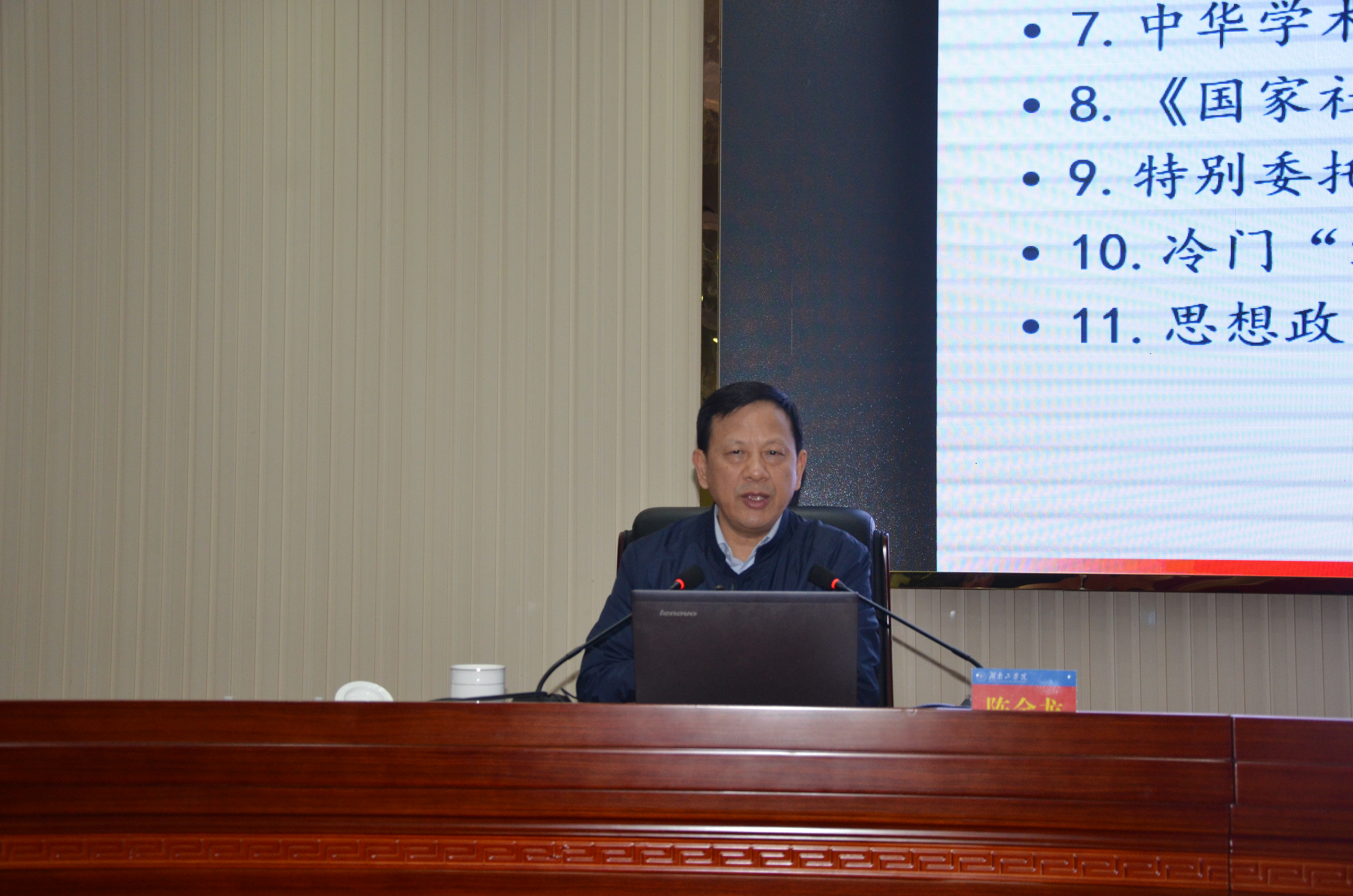 12月30日下午,应学校邀请,长江学者、华南师范大学马克思主义学院院长陈金龙教授来校在教学大楼12楼报告厅作了题为《学术研究的问题意识》的学术报告。报告开始前,校长罗建华、副校长崔晓利、胡穗在教学大楼12楼小会议室接见了陈金龙教授。副校长胡穗主持报告会。