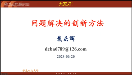 2023年6月20日,华北电力大学戴庆辉教授应邀开展以“问题解决的创新方法”为主题的线上学术讲座。best365100余名师生通过腾讯会议线上聆听了本次讲座。
