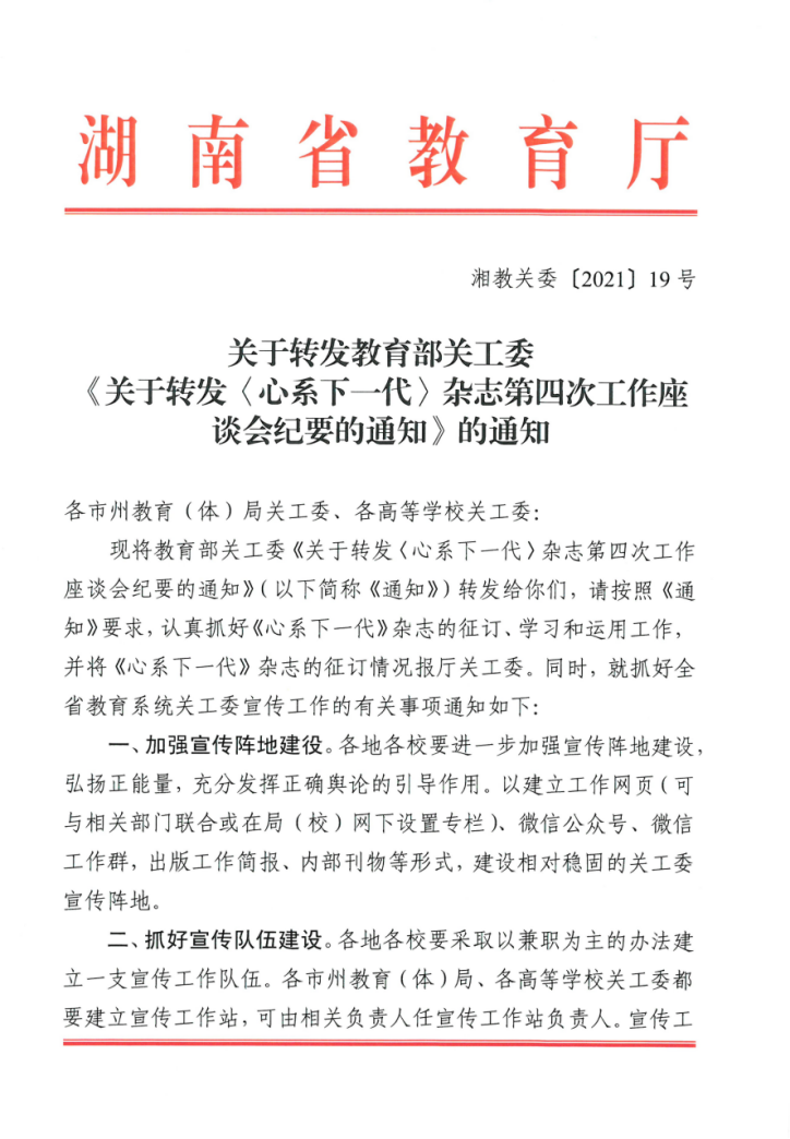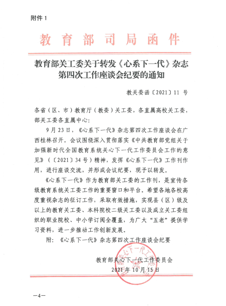 关于转发教育部关工委《关于转发〈心系下一代〉杂志第四次工作座谈会纪要的通知》的通知