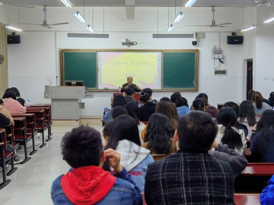 “五老” 党员樊家柏应邀与外国语学院学生分享自己的入党故事。