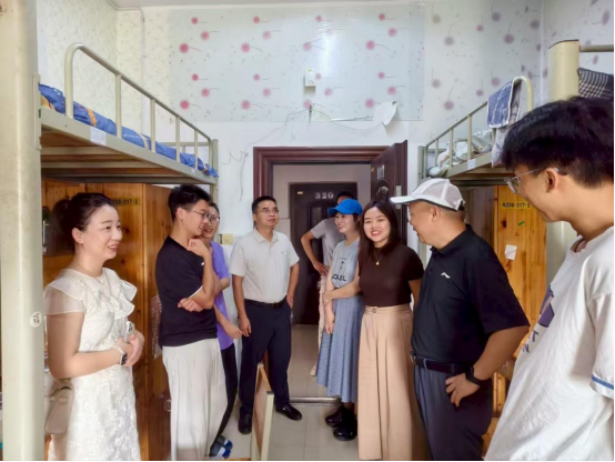 为切实了解25级新生入住后的生活状况,9月9日上午,理学院党委书记刘璟忠、院长谢忠祥、党委副书记傅娜、学工办主任兼分团委书记任静和辅导员王帅等一行走访了新生宿舍,与新生进行了深入交流。