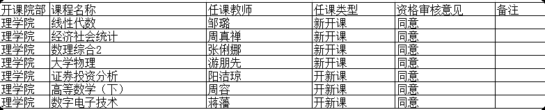 理学院2026年春季学期开新课和新开课教师任课资格审核结果公示