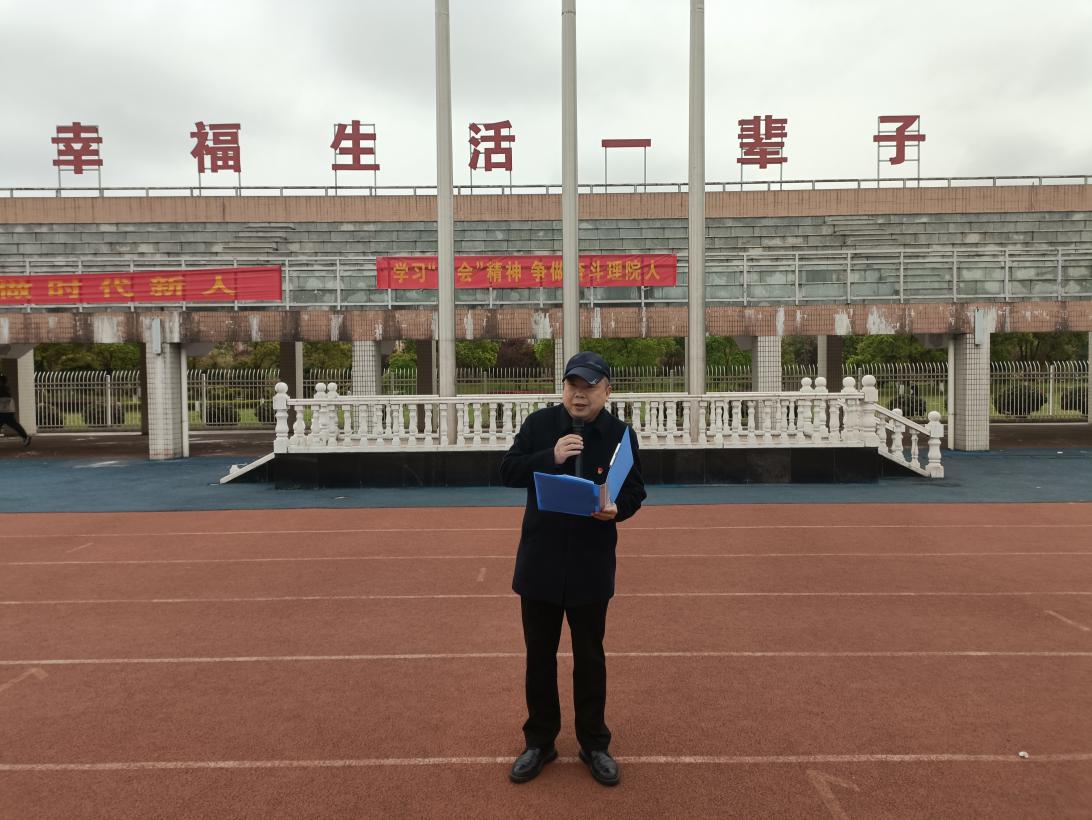 为进一步加强全院师生深入贯彻习近平新时代中国特色社会主义思想,学习践行“两会”精神,理学院于3月21日7:30在北田径场隆重举行“学习‘两会’精神 争做奋斗理院人”主题升旗仪式。院党委书记宁清平、院长刘璟忠、党委副书记何雪华、副院长谢忠祥、副院长邓元祥、组织员刘恒、学工办主任张艳霞、辅导员旷惠琦、全体班主任及理学院全体学生参加此次升旗仪式。