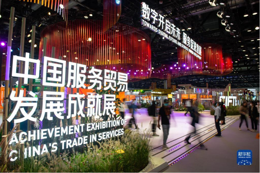 这是2021年9月4日拍摄的国家会议中心中国服务贸易发展成就展现场。新华社记者 陈钟昊 摄