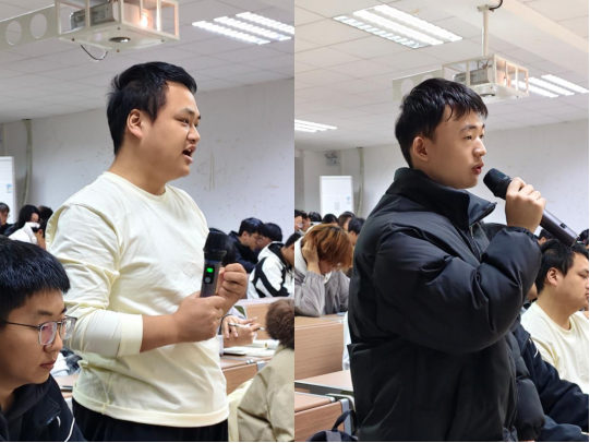 互动环节中,现场以爱国精神为核心展开深入交流。统计2401班杨俊分享道:“基层是青年学子成长的熔炉,我们青年人应立志在西部计划、三支一扶、选调生、参军入伍中锻炼能力、磨砺意志,为未来的发展打下坚实的基础。”物理2302班王柏康分享道:“作为新时代青年,我们应扛起时代责任,厚植爱国情怀,以实际行动助力国家发展”。