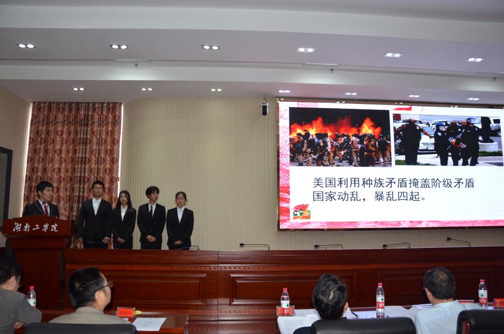 据悉,经过班级初赛,马克思主义学院组织的复赛,共有12个研究性学习小组进入到学校决赛。竞赛围绕“中国特色社会主义制度优势和社会治理能力提升研究”、“全面建成小康社会的成就与经验研究”“新时代大学生使命、责任和担当研究”“当代大学生家国情怀研究”“战‘疫’面前凝聚起中国精神磅礴伟力”等主题,在全校所有开设思想政治理论课的大学生中铺开。