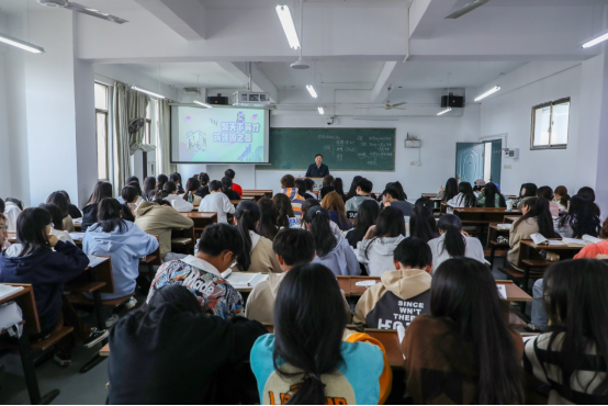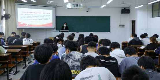 4月10日,在3613教室,校党委委员、副校长黄红卫以《聚天下英才 筑强国之基》为题,为工商2201-3班的学生讲授“形势与政策”课。