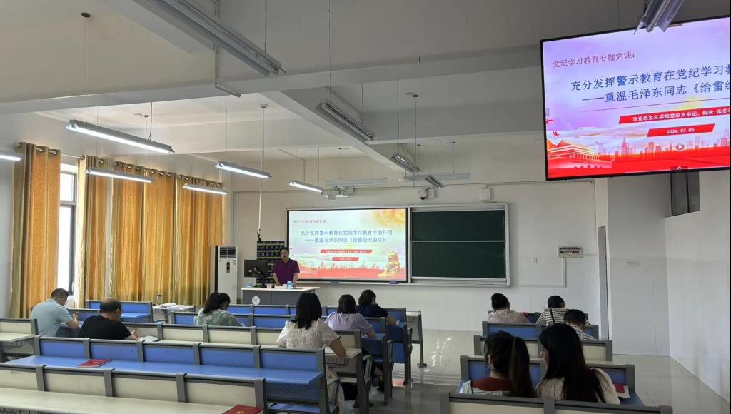 2024年7月5日上午,马克思主义学院党总支开展党纪学习教育警示教育会暨专题党课活动。