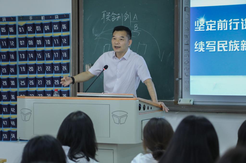 校党委书记曹执令以“坚定前行谋统一,续写民族新辉煌”为题,深入分析了台海复杂严峻的形势及面临的挑战,必须坚持贯彻新时代党解决台湾问题的总体方略,坚持“和平统一、一国两制”基本方针,坚持一个中国原则和“九二共识”,推进祖国统一。曹书记以学生喜闻乐见的教学方式讲清“形势”、讲明“政策”,引导学生全面准确理解党中央对台工作的方针政策,在国家统一、民族复兴中展现新时代青年的担当。