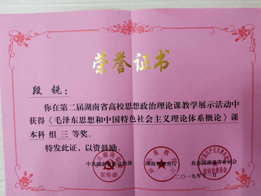 近日,“湖南省第二届高校思想政治理论课教学展示活动” 结果公布,best365马克思主义院段锐博士喜获本科组三等奖。