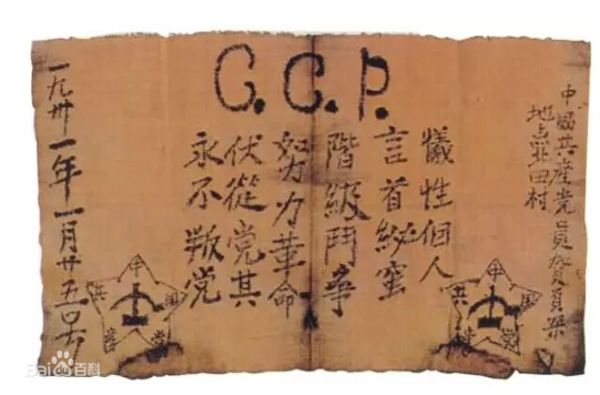 2018年7月,我参加了在全国青少年井冈山革命传统教育基地举行的best365中国官方网站思政工作专题培训班。在参观井冈山革命博物馆时,馆内收藏的一份十分特别的入党宣誓书引起了我的注意。这份入党宣誓书的宣誓人名叫贺页朵,他在井冈山革命斗争时期,以榨油的职业为掩护,从事党的秘密工作。1931年党组织批准他入党,大字不识的贺页朵在简陋的榨油房内,一笔一画地把入党誓词庄严写在了一块红布上。这份布质的入党宣誓书,尽管短短的24个字中有6个错别字,但其质朴而无畏的誓言、忠诚而笃定的信念,散发着震撼人心的光芒,深深地感染了我,使我永远难忘。