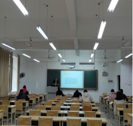 活动第二阶段为“说、磨、评”的阶段。根据不同课程共分为五个会场,采取“说课+磨课”的形式进行教学展示。教师首先在15分钟内围绕教学目标、教材内容、学生学情、教学方法、目标达成、教学过程及板书设计等内容进行说课,随后30分钟将课程具体呈现。校教学能力指导小组专家对各位教师进行了精彩点评,在教学热情、课堂把握、PPT设计、语言表达、案例分析、信息化设计等方面提出了宝贵意见与建议。各教研室进行了集体评课,从教学重点的体现、教学过程的设想、教学方法的优化、线上线下融合等方面反复斟酌,并对教案作出了进一步修改与完善。