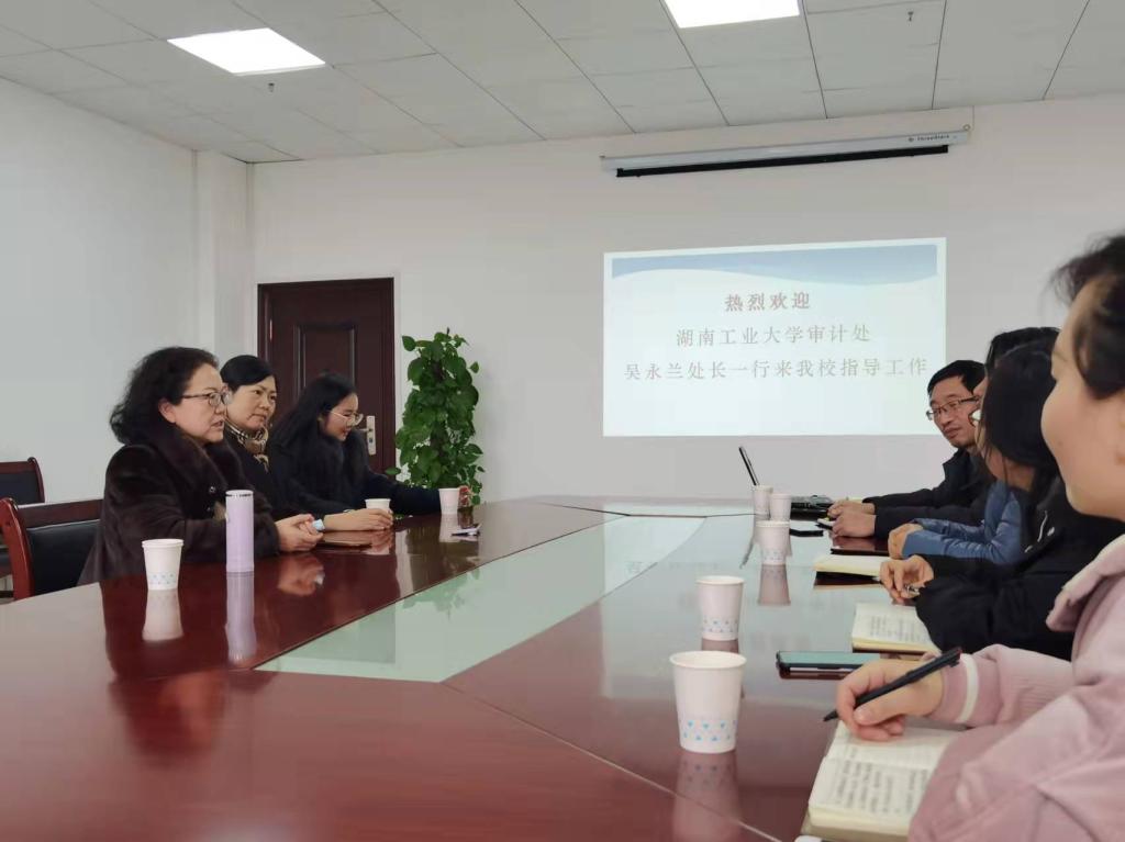 2021年12月31日下午,湖南工业大学审计处处长吴永兰一行来best365交流审计工作,审计处处长杨凤鸣主持会议,审计处全体成员参加会议。