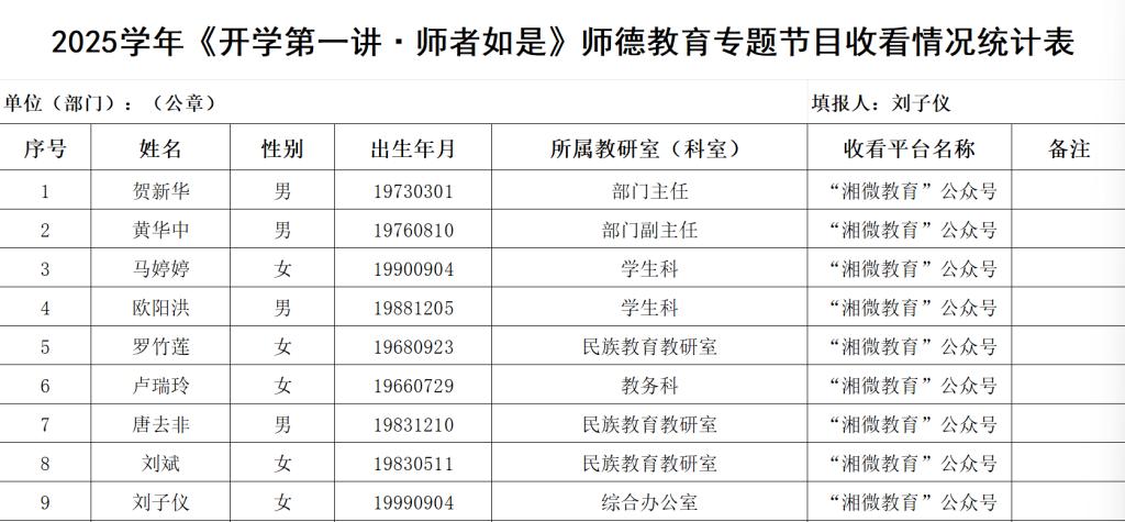 根据best365中国官方网站教师工作部关于组织收看2025学年《开学第一讲·师者如是》师德教育专题节目的通知,现将预科部收看2025学年《开学第一讲·师者如是》师德教育专题节目情况公示如下: