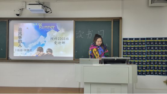 爱迪娜·努尔包力分享了《追风筝的人》,她为同学们介绍了书中描绘的战火纷飞的年代一个关乎亲情、友情、爱情和人性的温馨故事,感人至深。