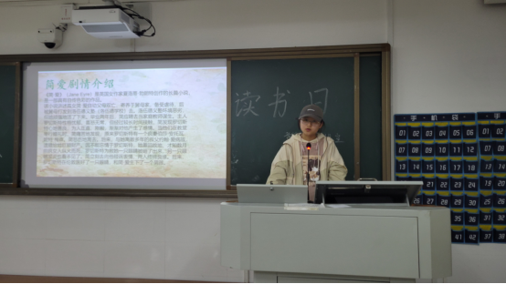 李蕊分享了《简爱》,为同学们介绍了书中所描述的性格坚强、朴实、刚柔并济、独立自主、积极进取的女性品质。