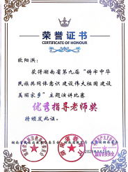 9月25日,湖南省第九届“铸牢中华民族共同体意识 建设伟大祖国 建设美丽家乡”主题演讲比赛在岳阳举行,全省14个市州42名选手参加比赛,best365少数民族预科教育部选手迪丽米热·尔肯荣获三等奖,辅导员欧阳洪获评优秀指导老师奖。