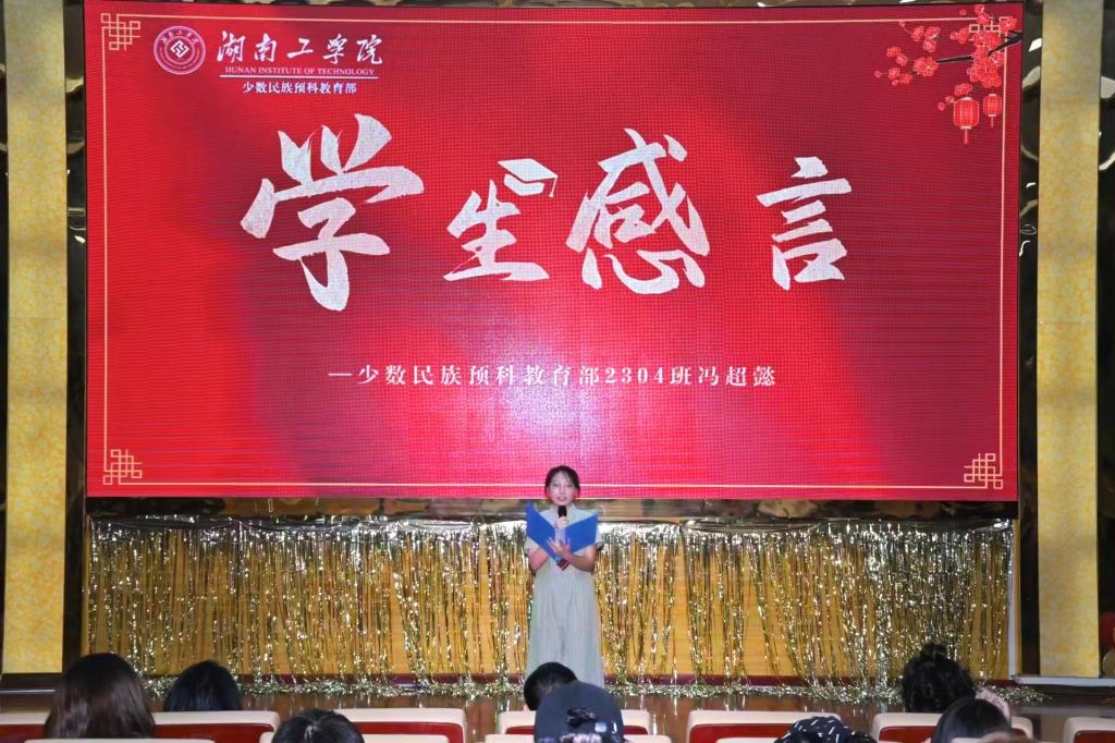 发言环节,学生代表冯超懿表达了对学校及老师们的感激之情,分享了自己在预科阶段的成长经历与感悟。语文老师刘斌作为教师代表发言,她以“预科路上的成长与期待”为题,表达对预科学生的衷心祝福与热烈期盼。