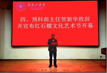 他还强调,今年的“红石榴”文化艺术节,要把促进学生全面发展作为首要任务,把深化预科文明内涵作为主要内容,把推进民族交流交融作为重要特色,要在活动设计、节目编排上充分展现和谐预科、书香预科、活力预科的实践内涵,不断推进与其他兄弟院系加强合作交流,不断创造优秀文化作品、挖掘优秀文艺人才、铸就预科独特气质。