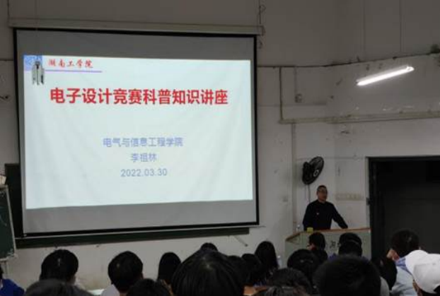 3月30日晚上,电气与信息工程学院在3409召开第11届“电协杯”电子设计竞赛科普知识讲座,电气与信息工程学院院长李祖林教授举行了科普知识讲座,会议由党委副书记刘海波博士主持,240余名参赛同学参加了讲座。