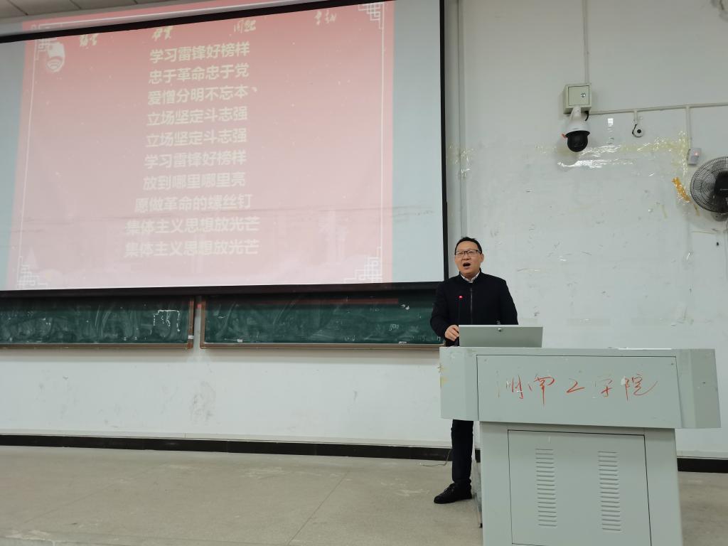活动开始,分团委书记刘佳林带领全体参会人员合唱歌曲《学习雷锋好榜样》。随后,院党委副书记唐晓雪为大家讲授雷锋精神的时代内涵,要求各班班委学习雷锋的精神和工作态度,抓好学风、班风、宿风建设,新学期开始,要树立目标,做好计划,培养良好的生活习惯。新的一年,建工学生干部要做好榜样带头作用,传递雷锋精神,做好平凡的工作。