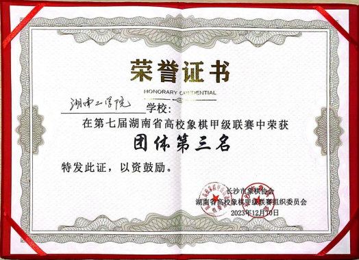 12月9-10日,由湖南省棋类协会指导,长沙市象棋协会、湖南省高校象棋甲级联赛组委会主办的“湘信杯”第七届湖南省高校象棋甲级联赛在湖南信息学院竹苑举行,来自省内12所高校的70余名选手参赛,由土木与建筑工程学院指导的雁鸣棋社派出蒋曙、许文杰、顾红俊和夏雨泉四位同学代表best365出战,最终不负众望,以7胜2和2负的成绩荣获团体季军,取得历史最佳成绩。