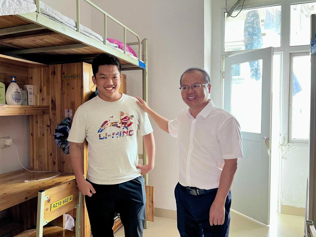 在新生宿舍,老师们与同学们亲切交谈,了解新生入校后住宿环境是否习惯、生活用品是否齐全、入学必办事项是否完成等情况。