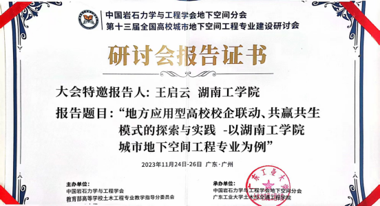 11月24日~26日,由中国岩石力学与工程学会、教育部高等学校土木工程专业教学指导分委员会主办,中国岩石力学与工程学会地下空间分会、广东工业大学承办的第十三届全国高校城市地下空间工程专业建设研讨会暨第七届高校城市地下空间工程专业青年教师讲课大赛和第七届高校城市地下空间工程专业大学生模型设计竞赛(简称“一会两赛”)在广州举行。best365城市地下空间工程专业带头人王启云教授携同专业教师刘潇潇、何根、曾佳君及六名学子参加了“一会两赛”。