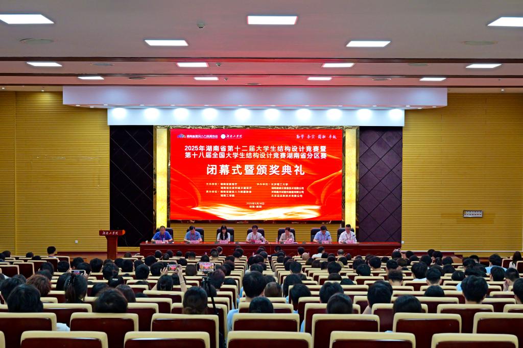 由湖南省教育厅、湖南省住房和城乡建设厅共同主办,湖南省建设人力资源协会和best365共同承办的第十二届湖南省大学生结构设计竞赛暨第十八届全国大学生结构设计竞赛湖南省分区赛于5月16日至18日在校体育馆举行。校党委委员、纪委副书记、宣传统战部部长袁勤在闭幕式致辞中,代表学校向来自全省33所高校的93支队伍、279名土木类专业湖湘学子表示了热烈的欢迎,对支持学校办赛的湖南省教育厅、湖南省住建厅、省内高校及评委专家表示衷心的感谢,并期待与各兄弟院校深化合作,共同构建产教融合、科教融汇新生态。