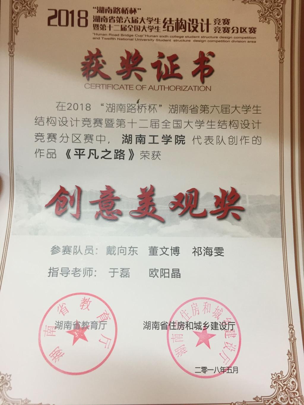 2018湖南省第六届大学生结构设计竞赛