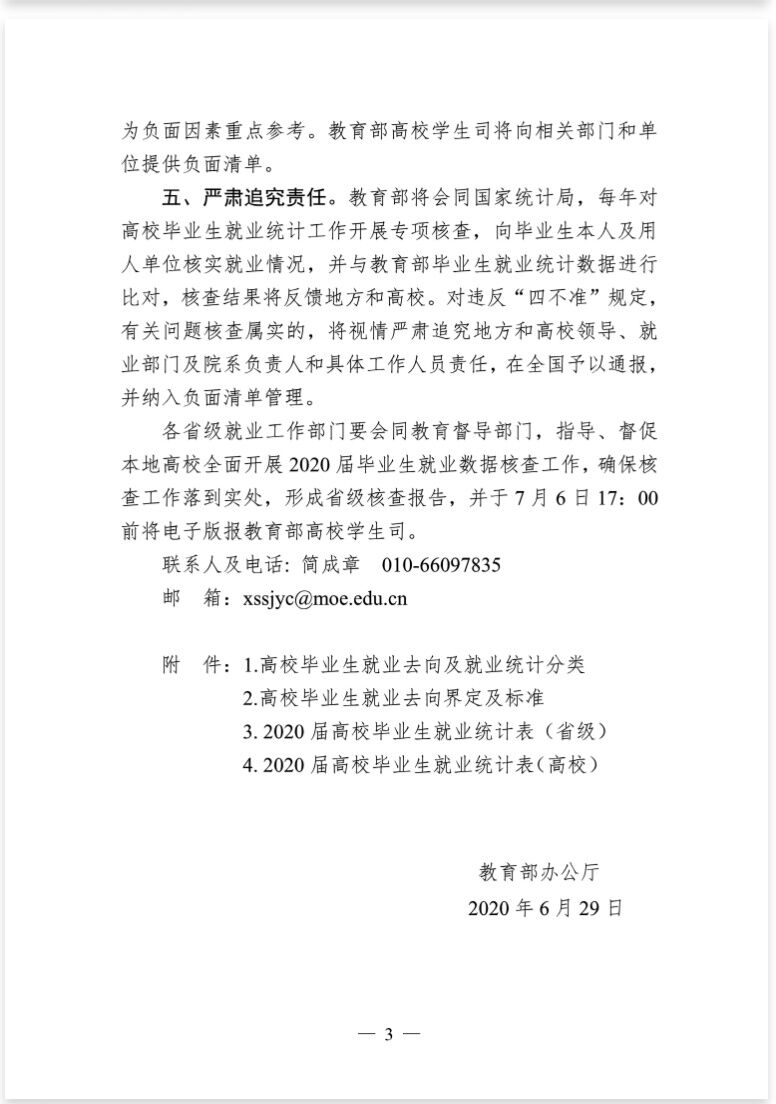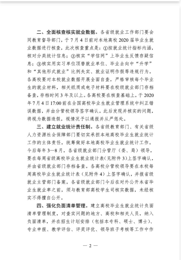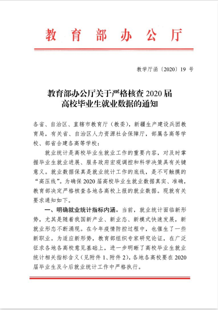教育部办公厅关于严格核查2020届高校毕业生就业数据的通知