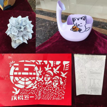 外语楼1楼大厅各种创意作品琳琅满目,有手工作品、绘画作品、剪纸作品,他们都是同学们结合自己的兴趣爱好和技能,利用废弃的易拉罐、塑料瓶、纸箱等材料制作而成。同学们以自己的一双巧手,按照自己的独特创意,使废旧物品重新焕发出生机。活动开展以来,同学们还以环保为主题创作了大量书法作品、短视频作品、摄影作品等,通过创作,提高了动手能力,提升了环保意识。
