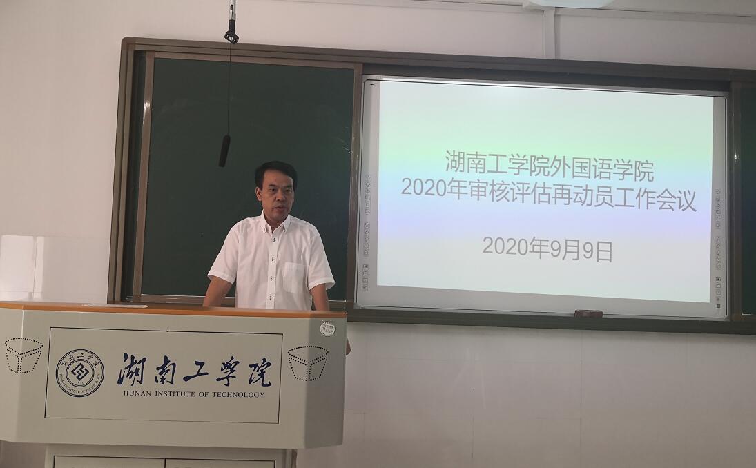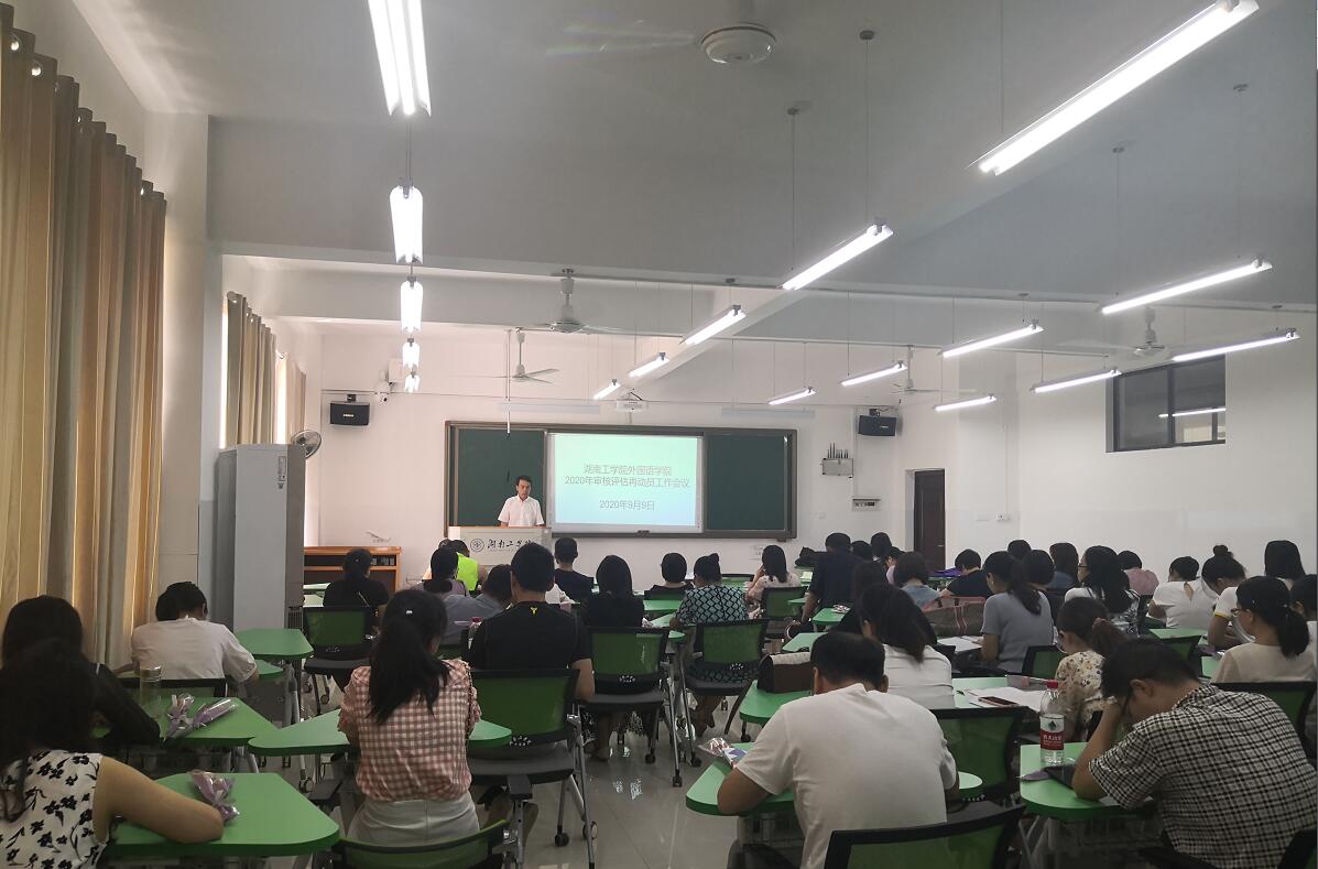 9月9日,外国语学院在外语楼201教室召开本科教学工作审核评估再动员大会暨师德师风培训会议。外国语学院全体教职工参会,大会由学院党委副书记蔡玲主持。
