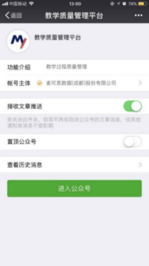 扫描界面下方二维码,或搜索“教学质量管理平台”,关注教学质量管理平台微信公众号,登录教学评价系统。