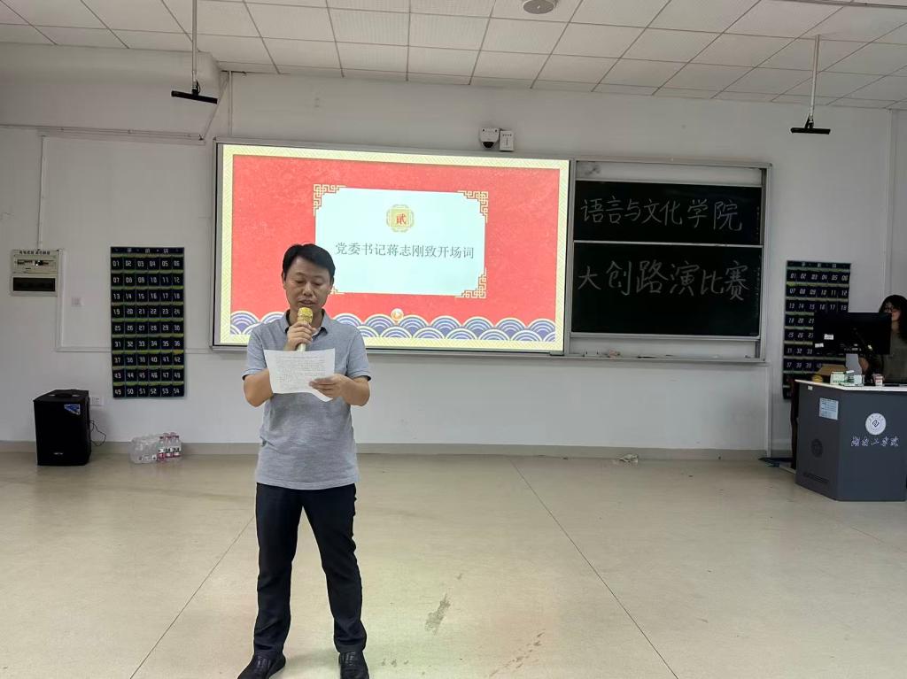 党委书记蒋志刚致开场辞。他强调,作为语言与文化学院的学生,要把握时代机遇,立足专业特色,将语言优势与创新创业紧密结合,为湖南高质量发展增添国际化动力。他对大学生提出三点期望:一是厚植家国情怀;二是锤炼过硬本领;三是拥抱开放合作。