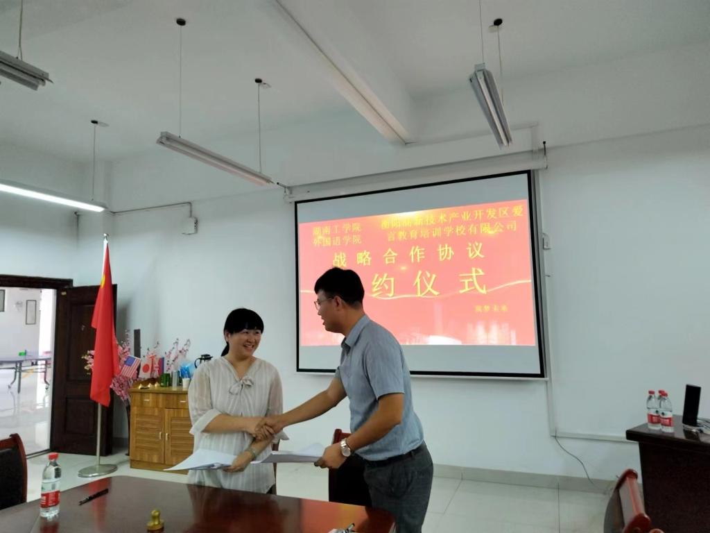 参加签约仪式的衡阳高新技术产业开发区爱言教育培训学校有限公司对双方的合作给予了充分的肯定,希望双方能够在人才培养、实习基地建设、产学研项目开发,特别是小语种的建设上能够深入合作,并希望能够利用公司位于衡阳的区位优势,充分开展实习实训,吸引更多的毕业生前往就业。
