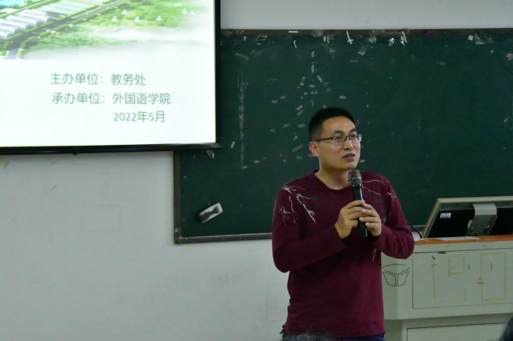 5月25日晚,大学生英语演讲比赛(决赛)暨2022年校大学生英语演讲·写作·阅读大赛颁奖礼在外语楼612报告厅隆重举行。来自全校的18名同学参加了比赛,教务处副处长任长安、外国语学院副院长谢争艳、部分外语教师及外国语学院学生代表观摩了此次比赛。经过激烈角逐,朱厅平等同学荣获一等奖,钟浩宇等同学获二等奖、姚本庆等同学获三等奖。