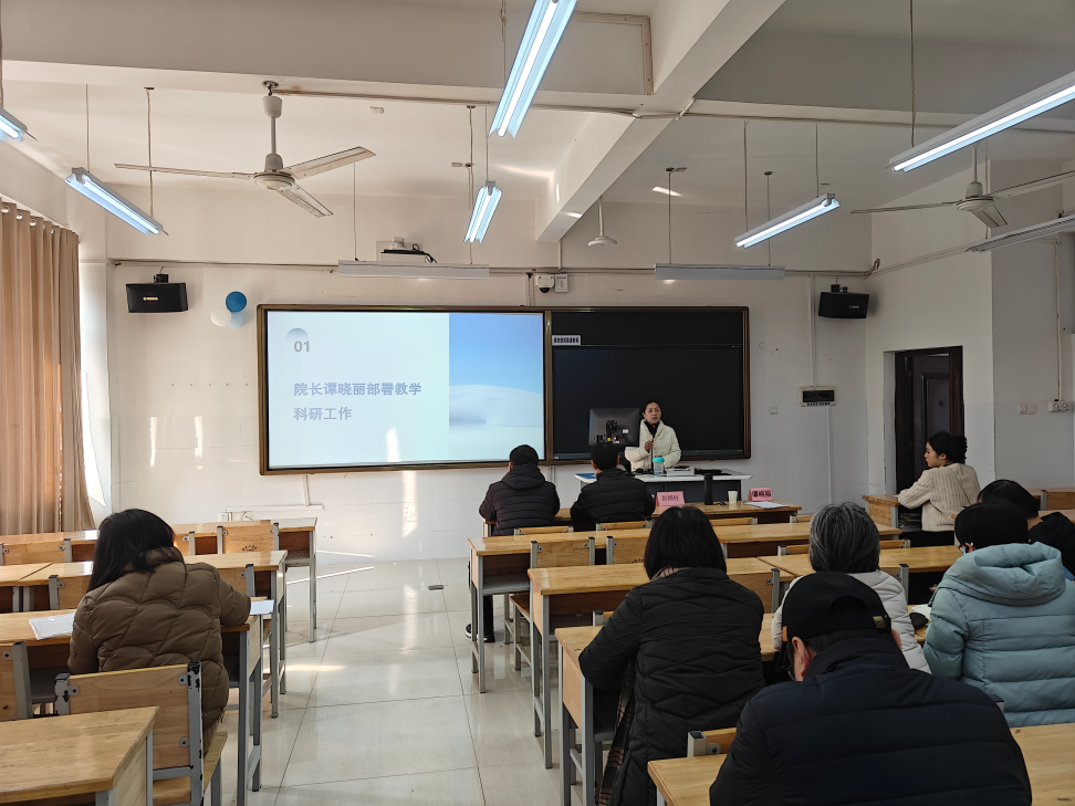 第二阶段召开全院教职工大会。院长谭晓丽就近期教学科研工作进行了详细的部署。她指出学院要深入学习和贯彻湖南省“两优方案”,认真领会文件精神,抓紧国家社科项目申报书的打磨,加强省级教学成果奖项目的培育,积极谋划学生就业等学院建设的重要工作,为2025年工作做开好局。