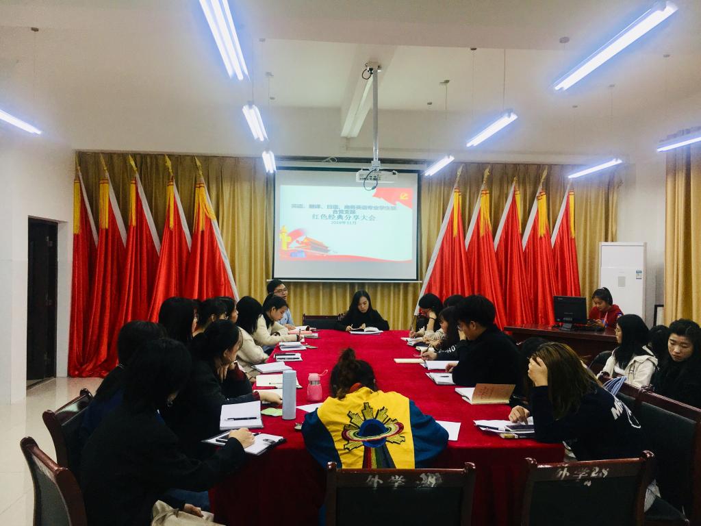 11月8日晚,外国语学院英语、翻译、日语、商务英语专业学生联合党支部在外语楼103党员活动室召开红色经典分享暨“改作风、勇担当,带头真抓实干”主题研讨大会。本次大会由支部书记罗鸯同志主持。