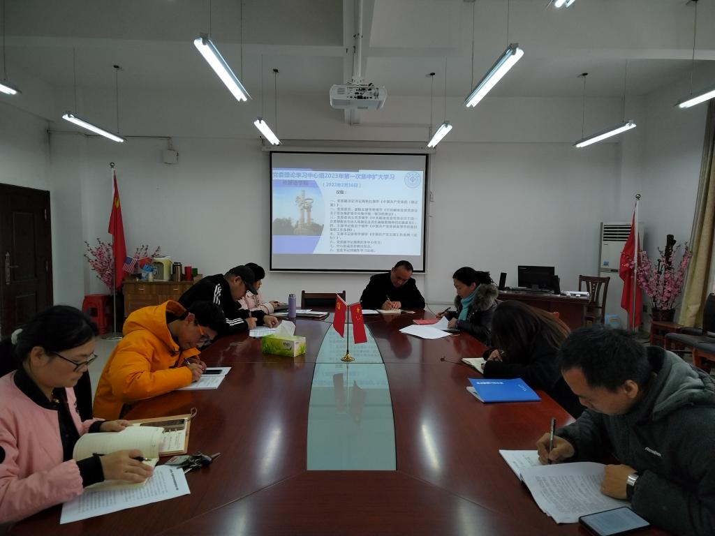 2月16日下午,外国语学院党委理论学习中心组在外语楼317会议室举行2023年第一次集中学习(扩大)会。党委理论学习中心组全体成员、各支部书记参会。学习会由党委书记刘斌主持。