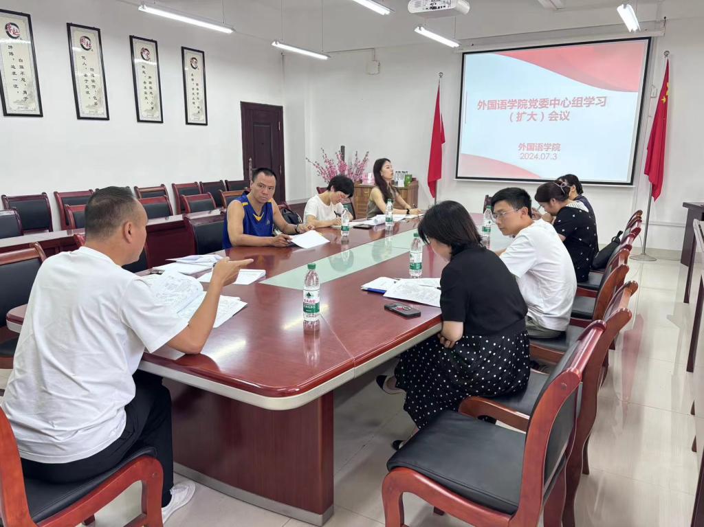 7月3日下午,外国语学院党委理论学习中心组在外语楼317会议室举行了党委中心组2024年第七次集中学习暨党纪学习教育专题研讨。会议由党委书记刘斌主持,学院党委理论学习中心组成员、各党支部书记出席了本次会议。